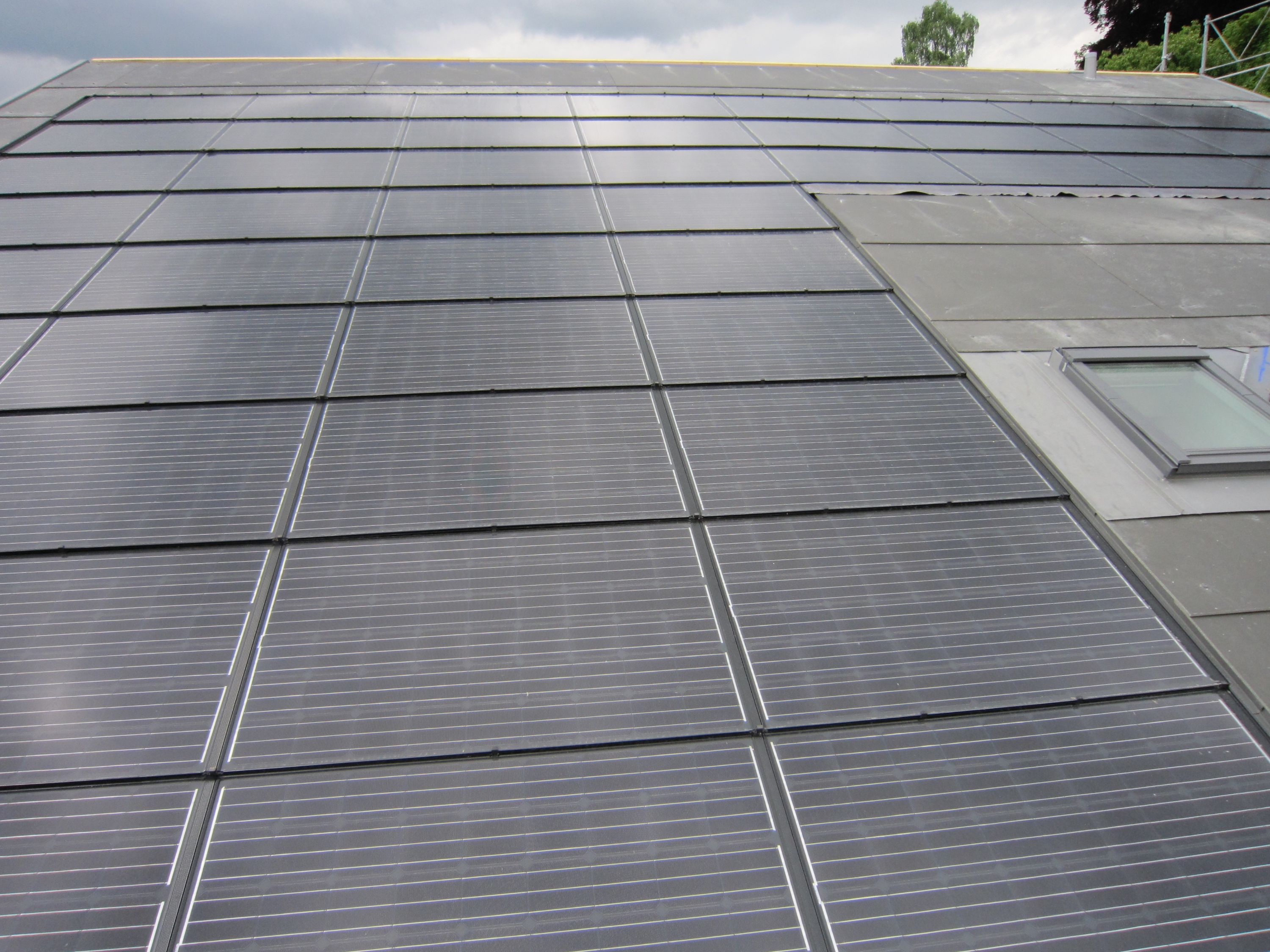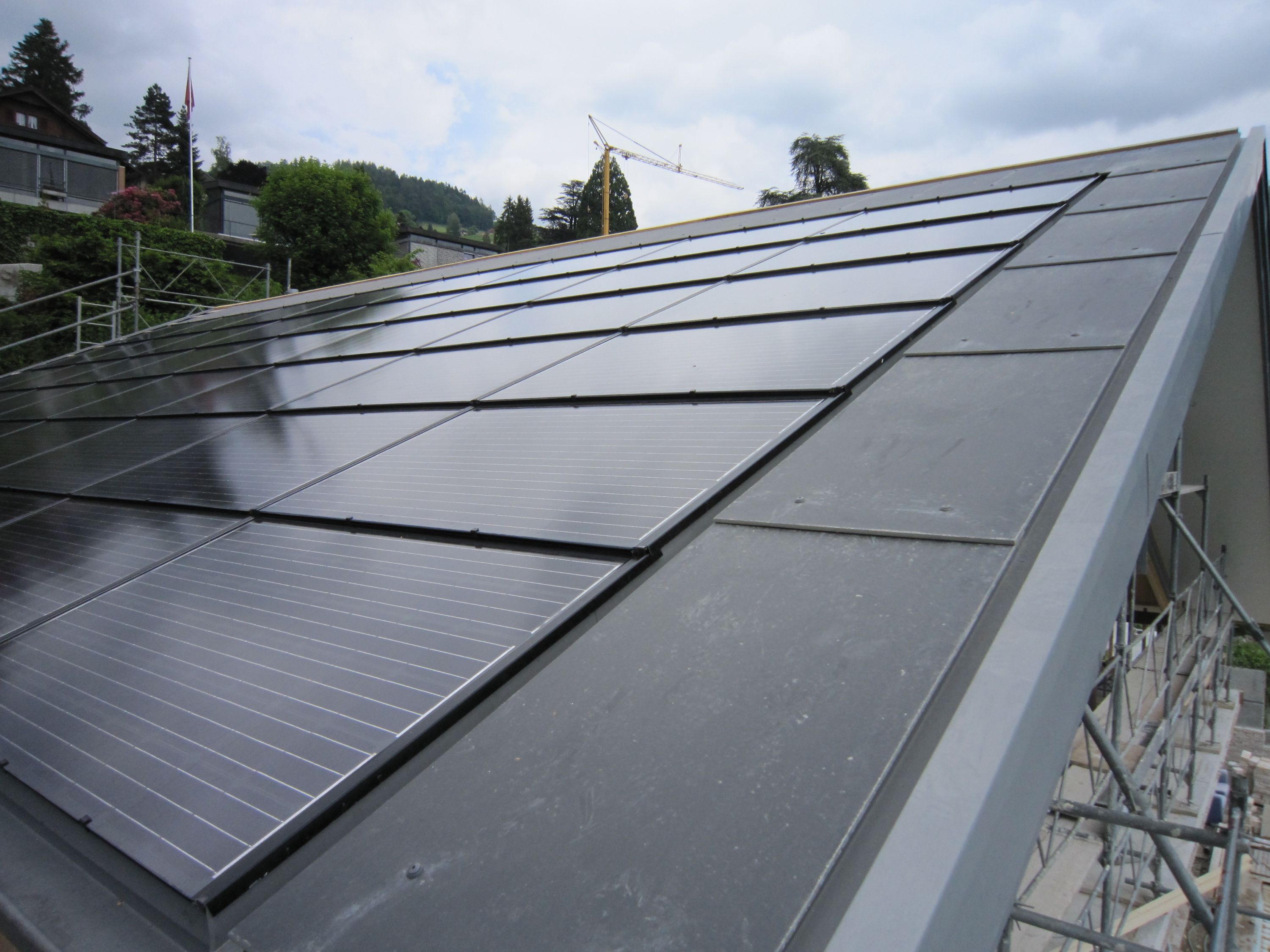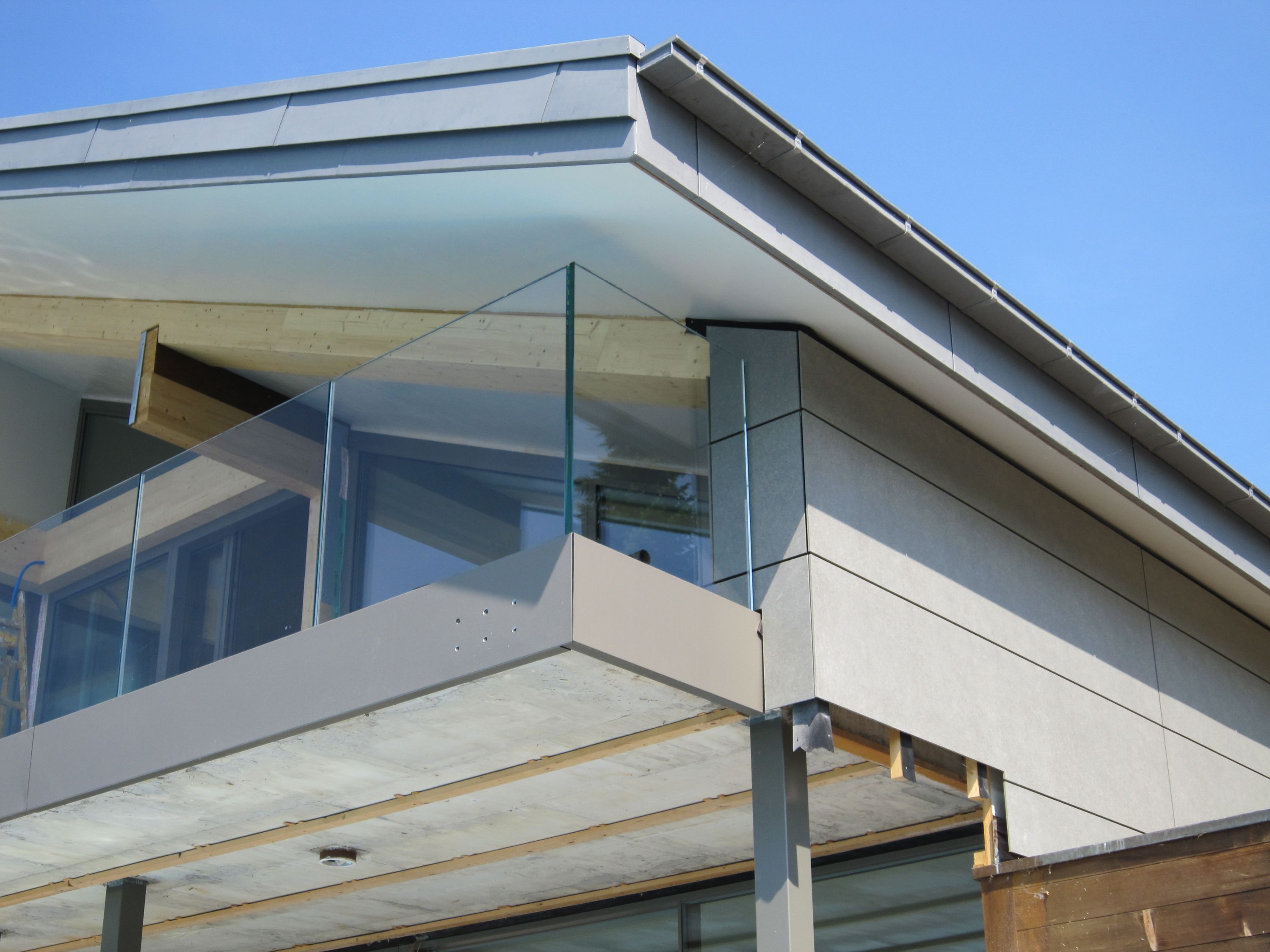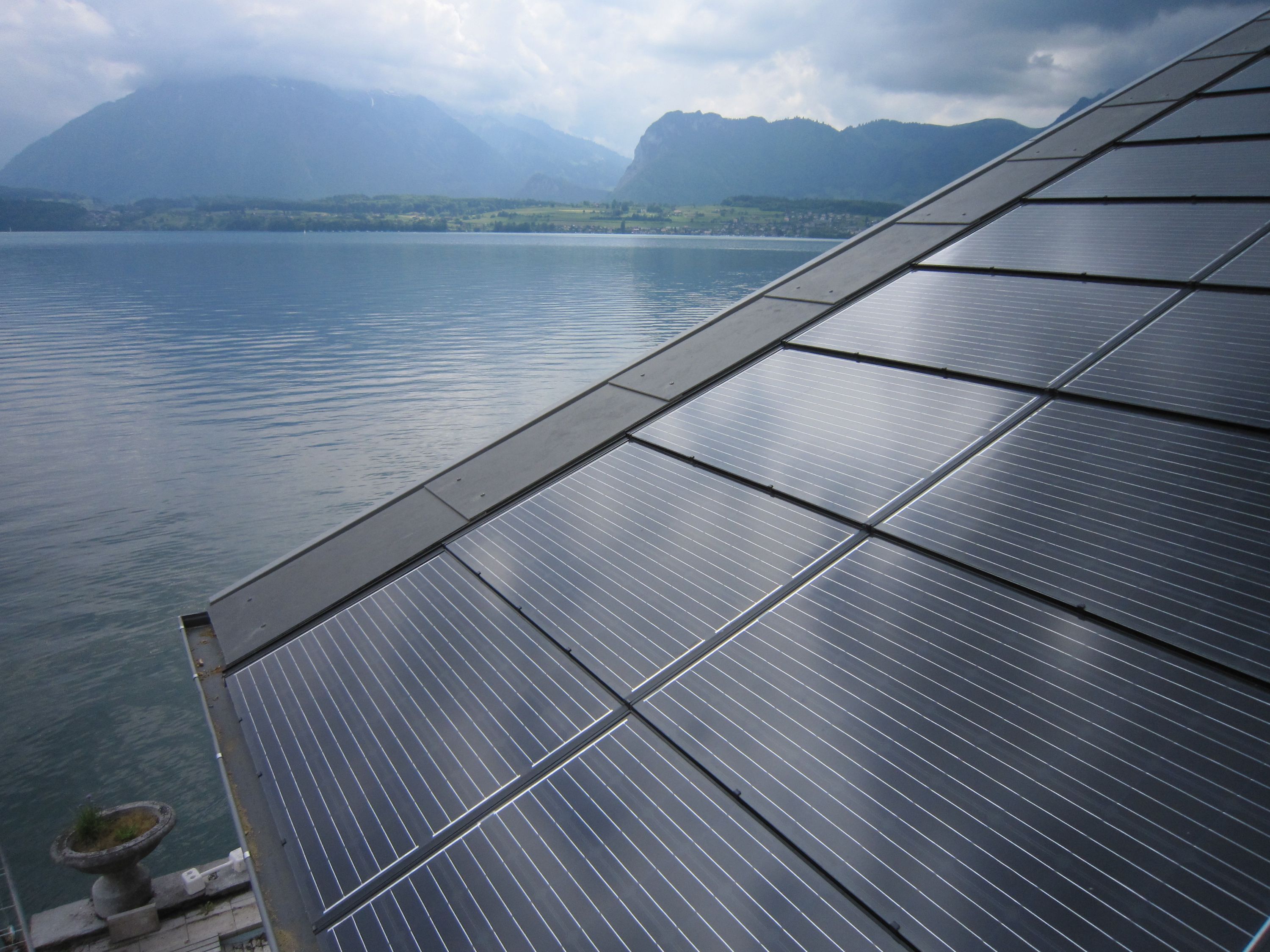Umbau eines bestehenden Hauses in Oberhofen. Neue Dämmung nach Minergiestandard mit Holzfasern und Celluloseflocken, neue Gebäudehülle mit verdeckt befestigten Eternitplatten, neues Dach mit Solaranlage und grossflächigem Eternit. Die Solaranlage wurde gegen Elektrosmog abgeschirmt.