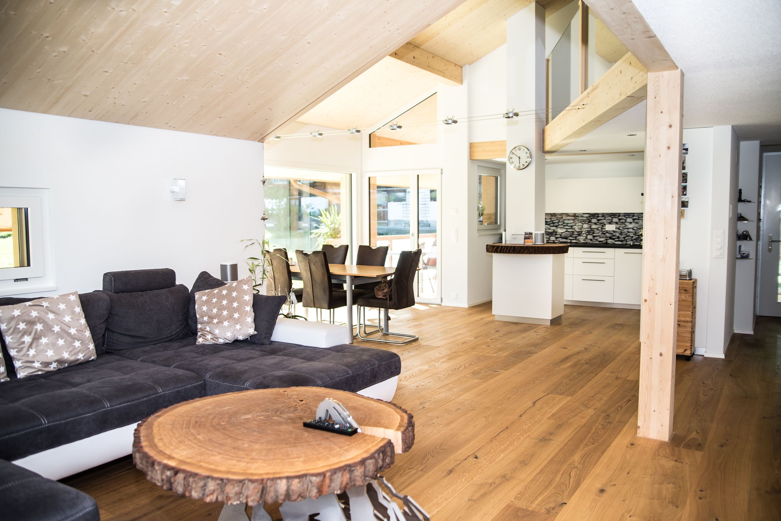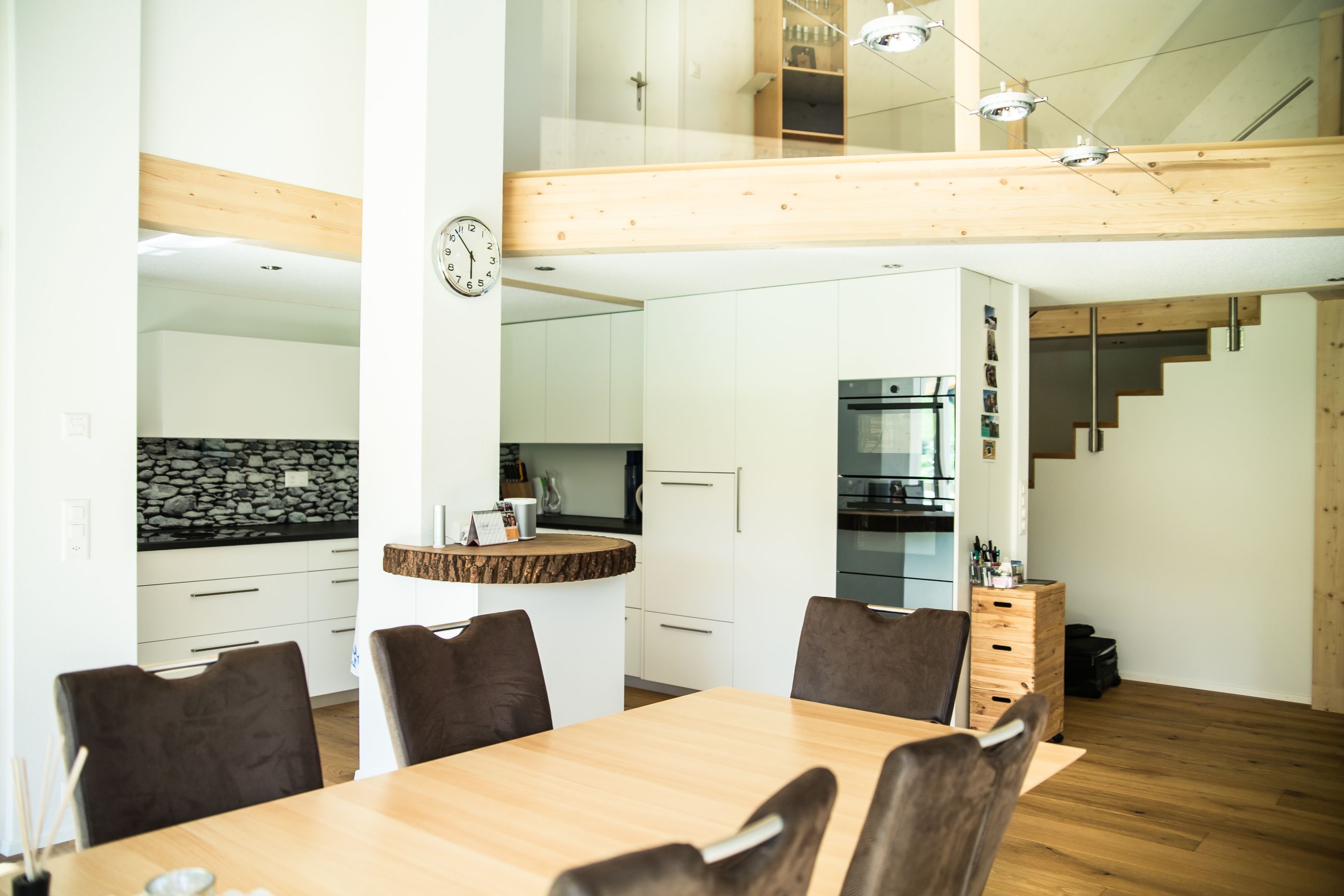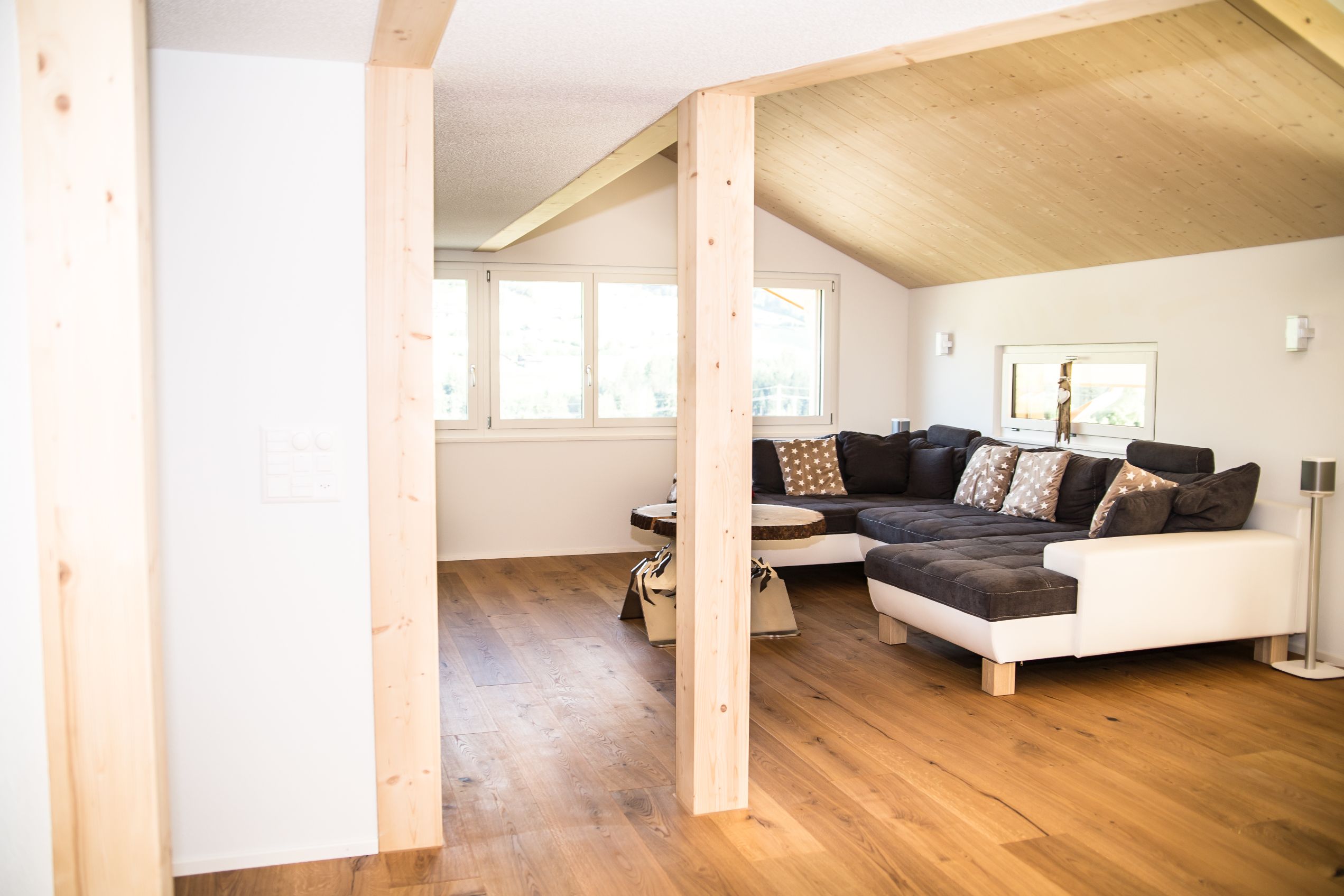 «Mit dem Aufbau auf das bestehende Haus und dem prägnanten Innenausbau haben wir uns einen Traum erfüllt. Unsere Erwartungen wurden übertroffen – wir sind sehr glücklich. Marc Allenbach und sein Team haben an alles gedacht. Fragen, die sich uns stellten haben sie kompetent und nachvollziehbar beantwortet – bevor wir sie überhaupt stellen mussten. Der Bau ging äusserst speditiv vorwärts. Nach jedem Tag waren die Arbeiten sichtbar fortgeschritten. Alles klappte reibungslos. Wir hatten nie das Gefühl kontrollieren zu müssen. Wir sind froh, haben wir die meisten Arbeiten im Tal vergeben. Architekt, Zulieferer, Partner und das Team Allenbach waren regional verbunden und wie eine grosse Familie.