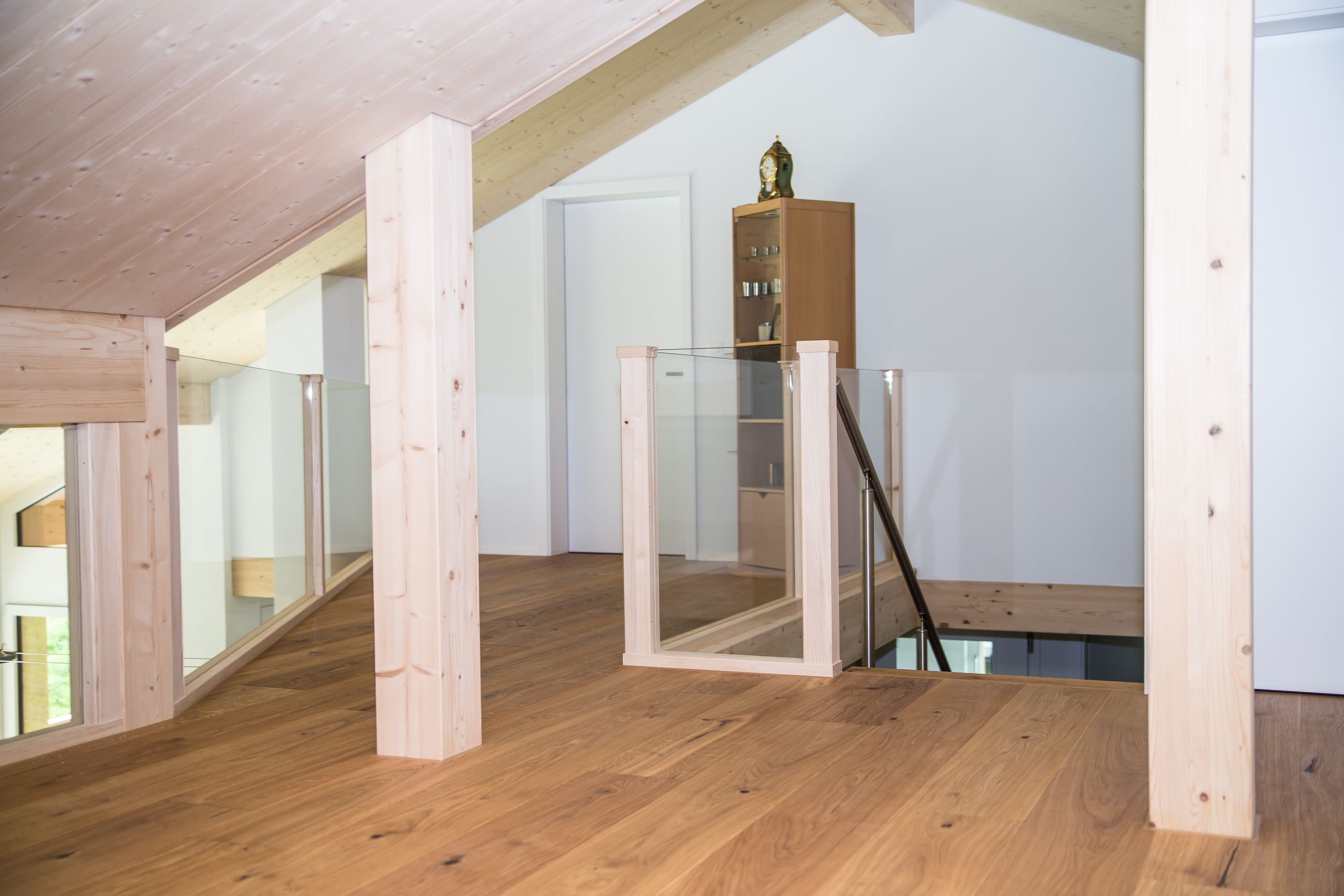 Aufstockung eines bestehenden Einfamilienhauses in Wengi. Das bestehende Haus, erbaut durch Allenbach Holzbau im Jahr 1985, wird aufgestockt und es wird neuer Wohnraum geschaffen. Das Einfamilienhaus wird zu einem Zweifamilienhaus und hilft mit, das verdichtete Bauen umzusetzen und ohne Landverbrauch mehr Wohnraum zu schaffen. Die Bauherrschaft hat bei der Gestaltung des Innenausbaus massgeblich mitgearbeitet und unverkennbar ihren Stil umgesetzt.