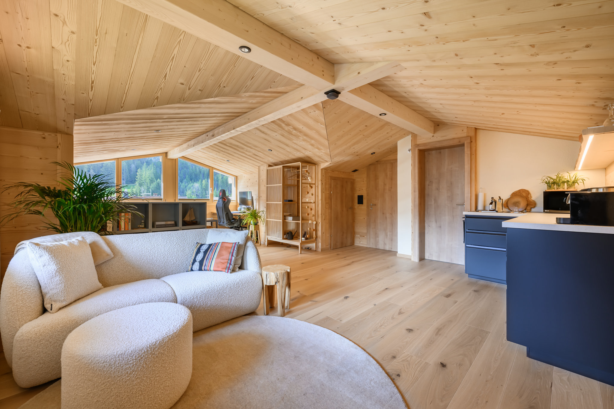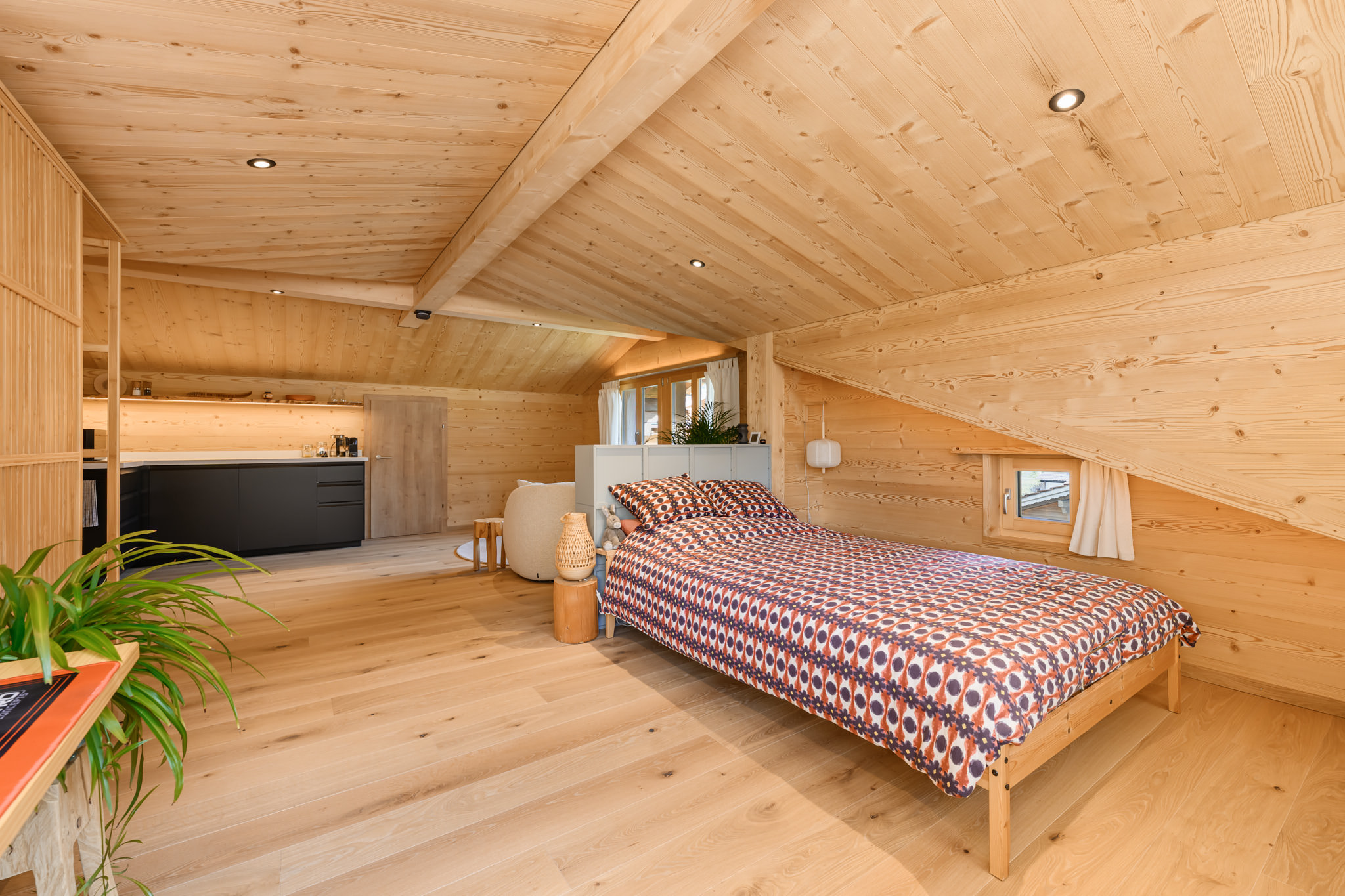 Nach einer umfassenden Beratung der Solarholzbauer stand für Familie Bigler fest: «wenn, dann richtig!» Also startete im Mai 2024 der 3-monatige Dachumbau, bei dem nicht nur das gefährliche Asbest entfernt wurde, sondern auch der Dachstock zu einem modernen, wohnlichen Gästezimmer umgebaut wurde. Ein weiterer Schritt Richtung Zukunft: Auf dem neuen Dach wurde zusätzlich eine Solaranlage installiert – ein Gewinn – nicht nur für die Energieeffizienz des Hauses, sondern auch ein aktiver Beitrag zum Umweltschutz.