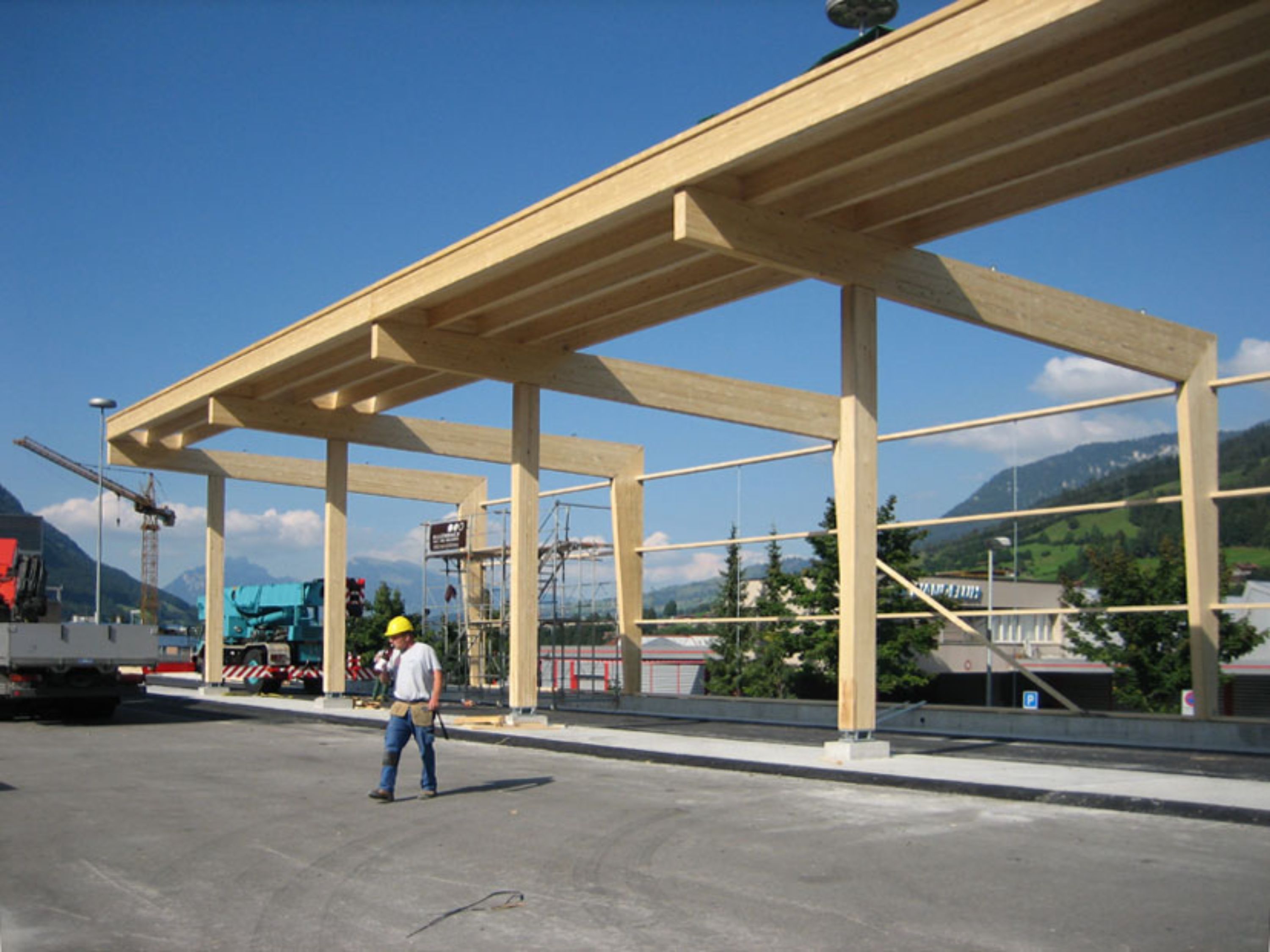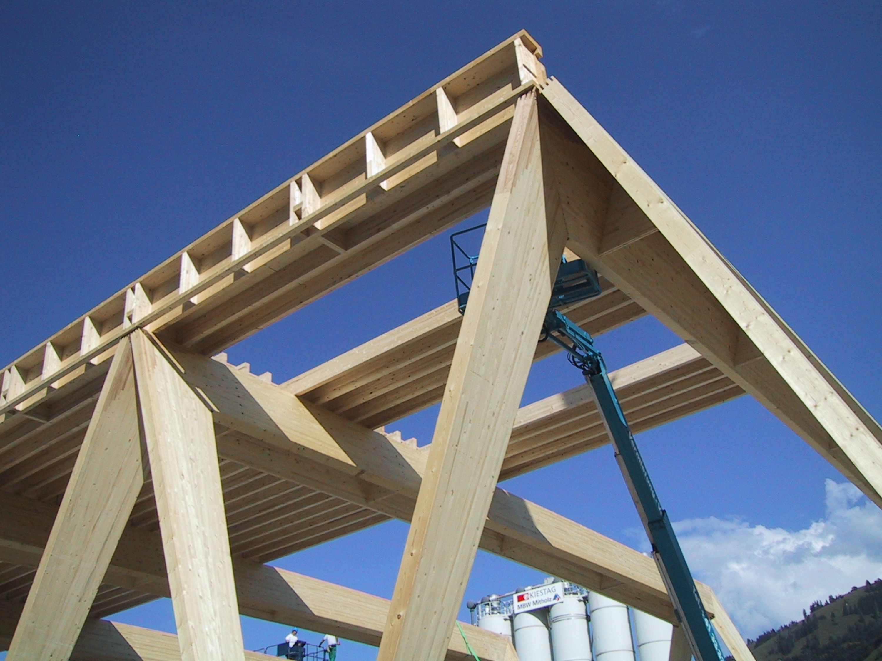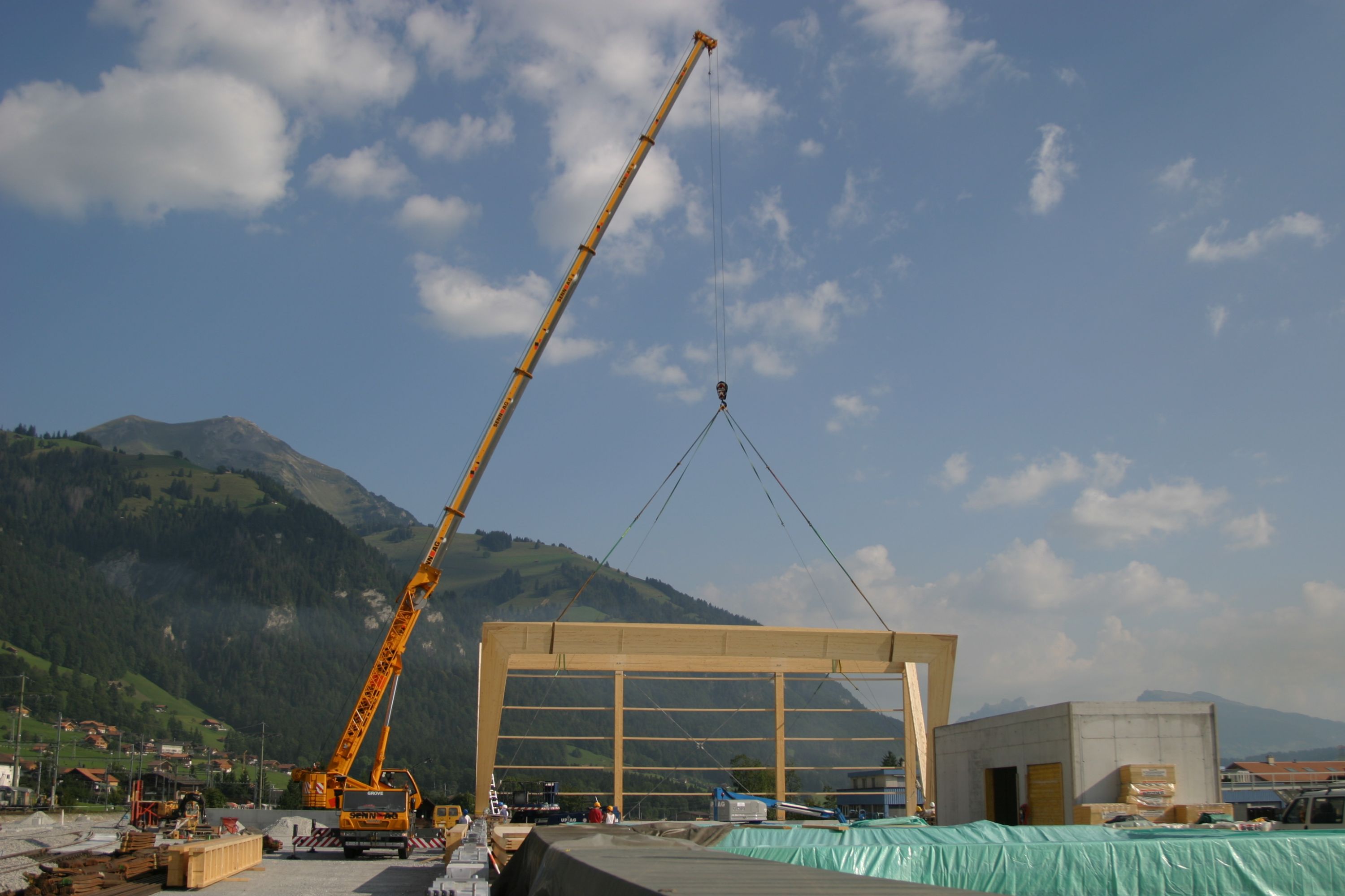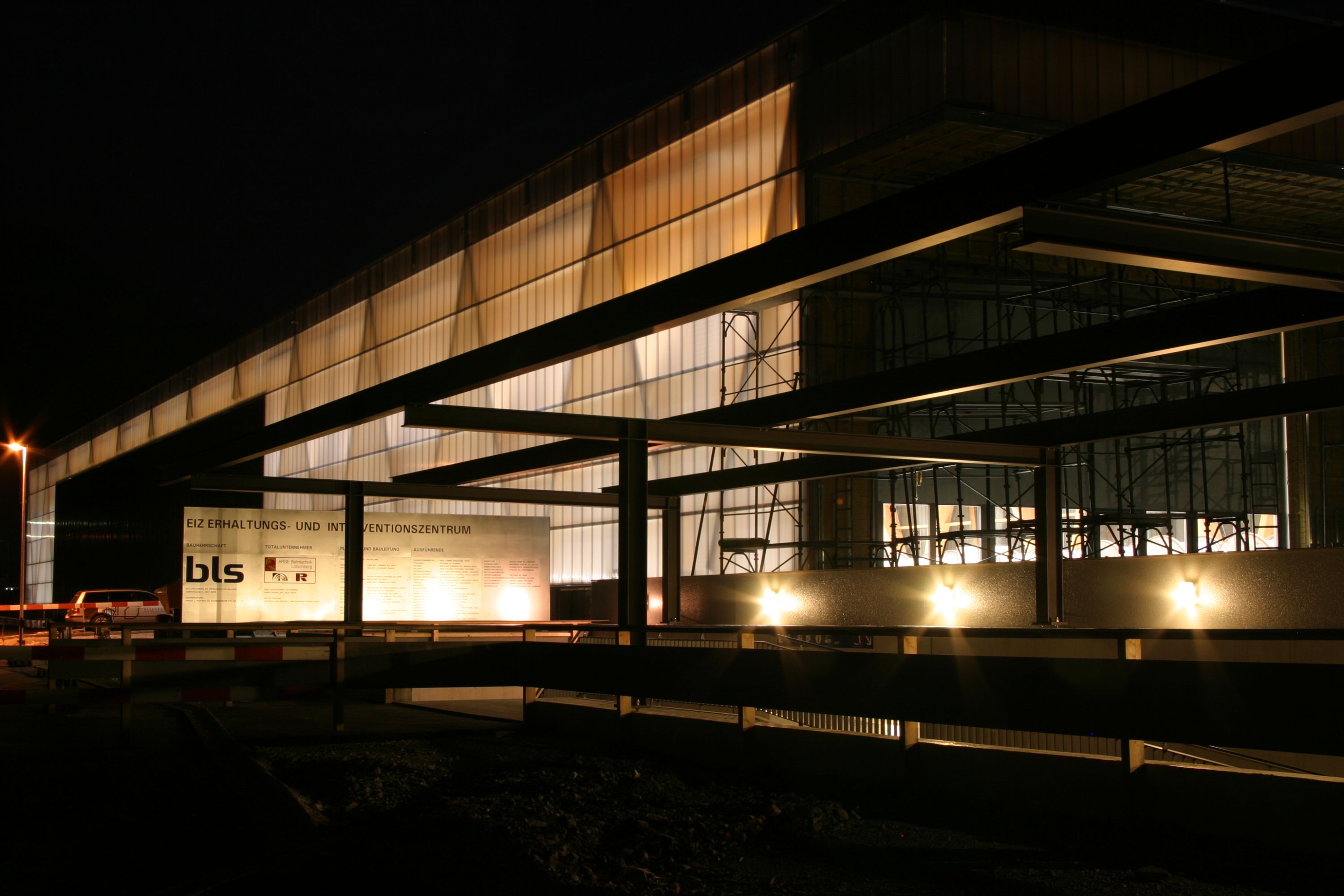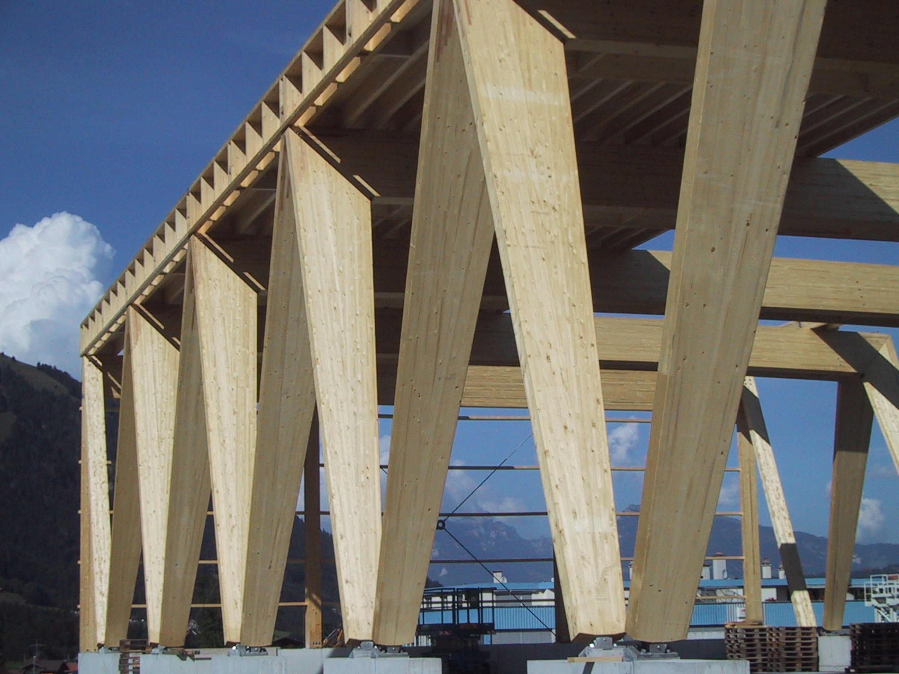 Bereits im Jahr 2006 erhielt die Allenbach Solartechnik und Holzbau AG den Auftrag, an dem Grossprojekt Erhaltungs- und Interventionszentrum in Frutigen mitzuwirken. Für die zwei grossen Hallen mit 60 bzw. 100 Metern Länge und einer Überspannweite von 22 Metern, fertigte und installierte Allenbach eine Tragekonstruktion komplett aus Holz.
