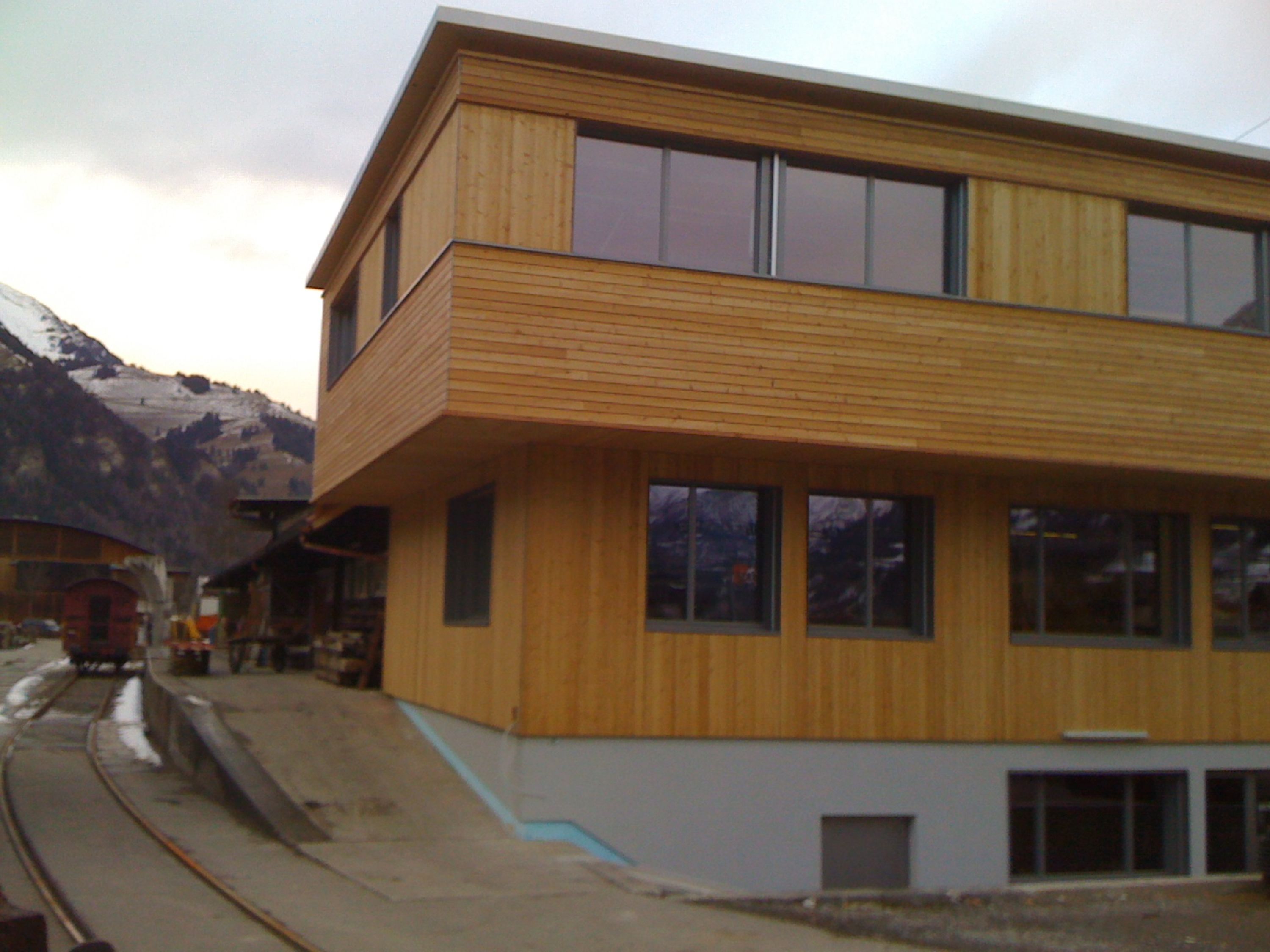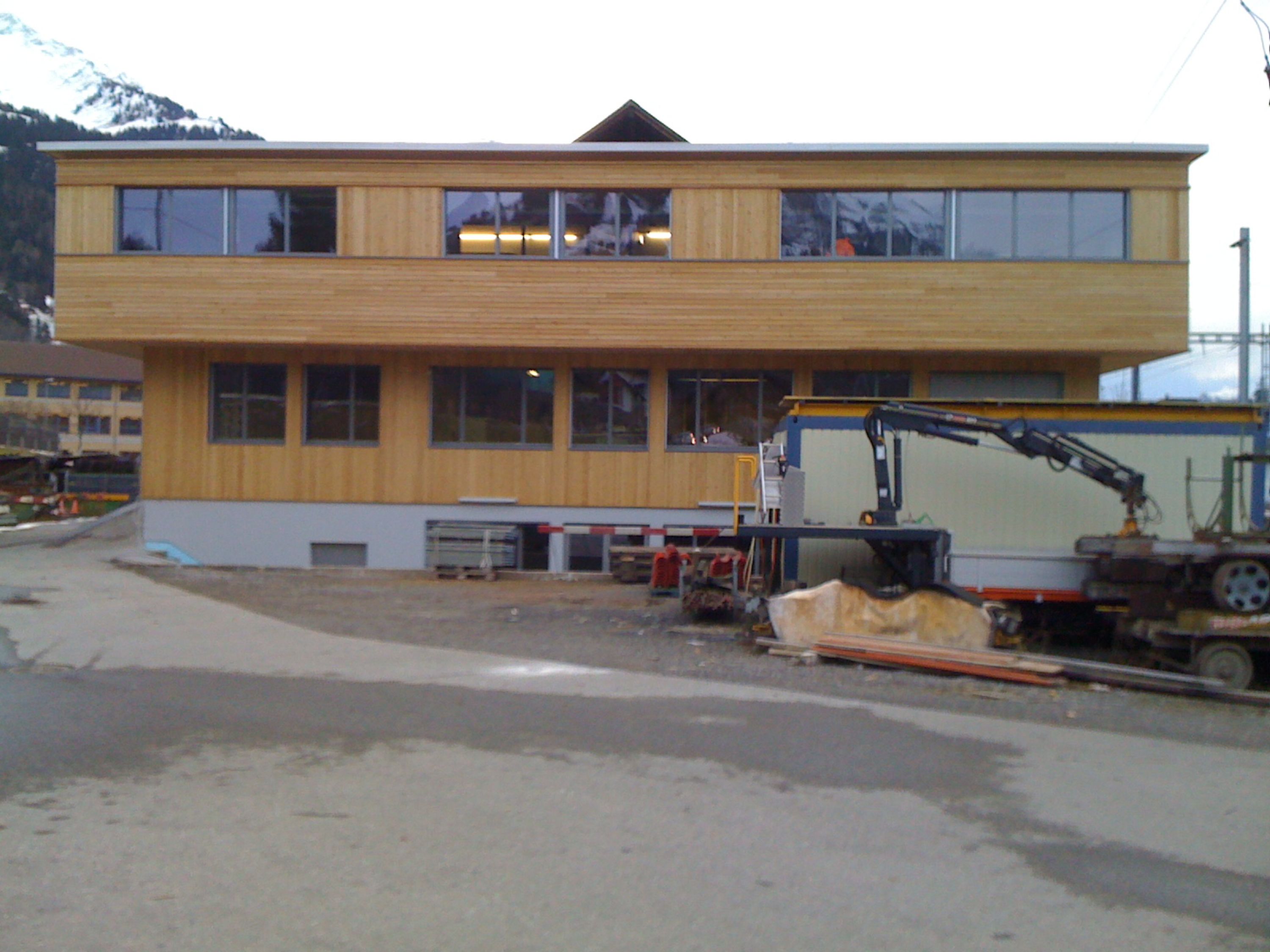 Neubau eines Bahndienstmagazins als Bahnmeistermagazin in Holzelementbauweise für eine schnelle und rationelle Bauweise.