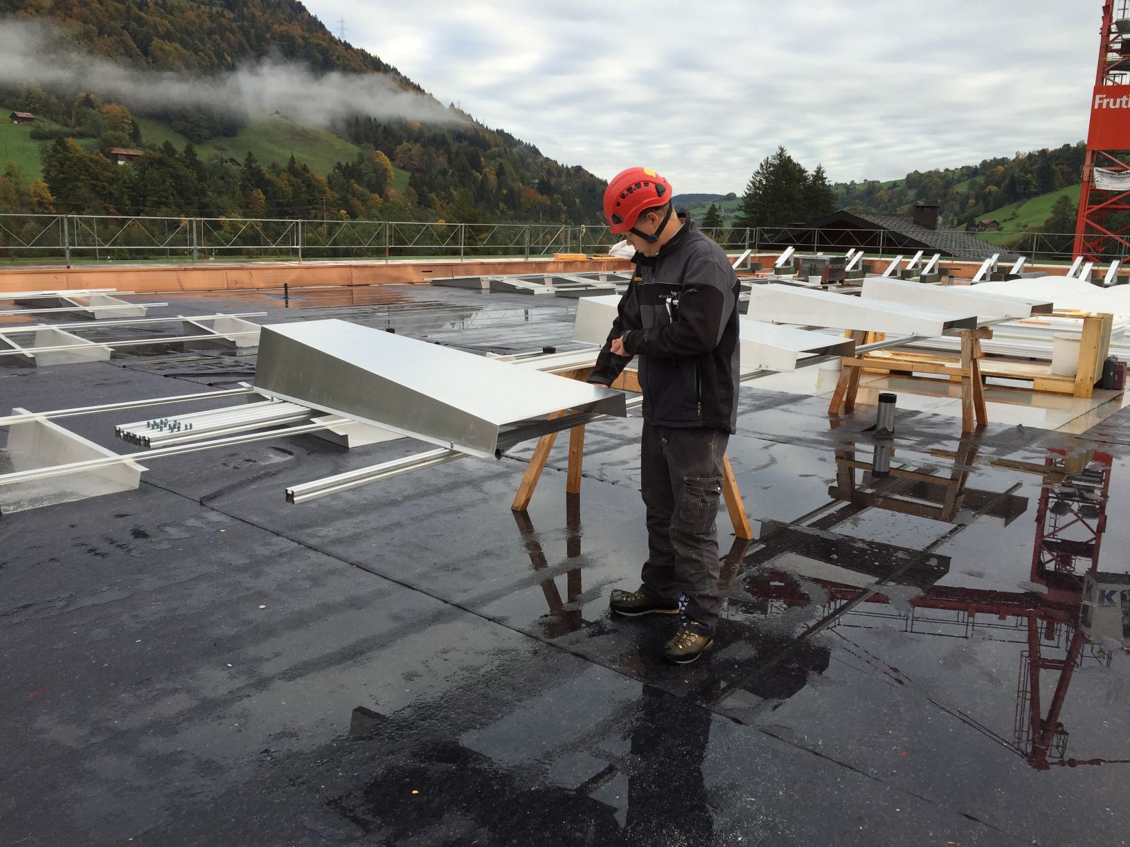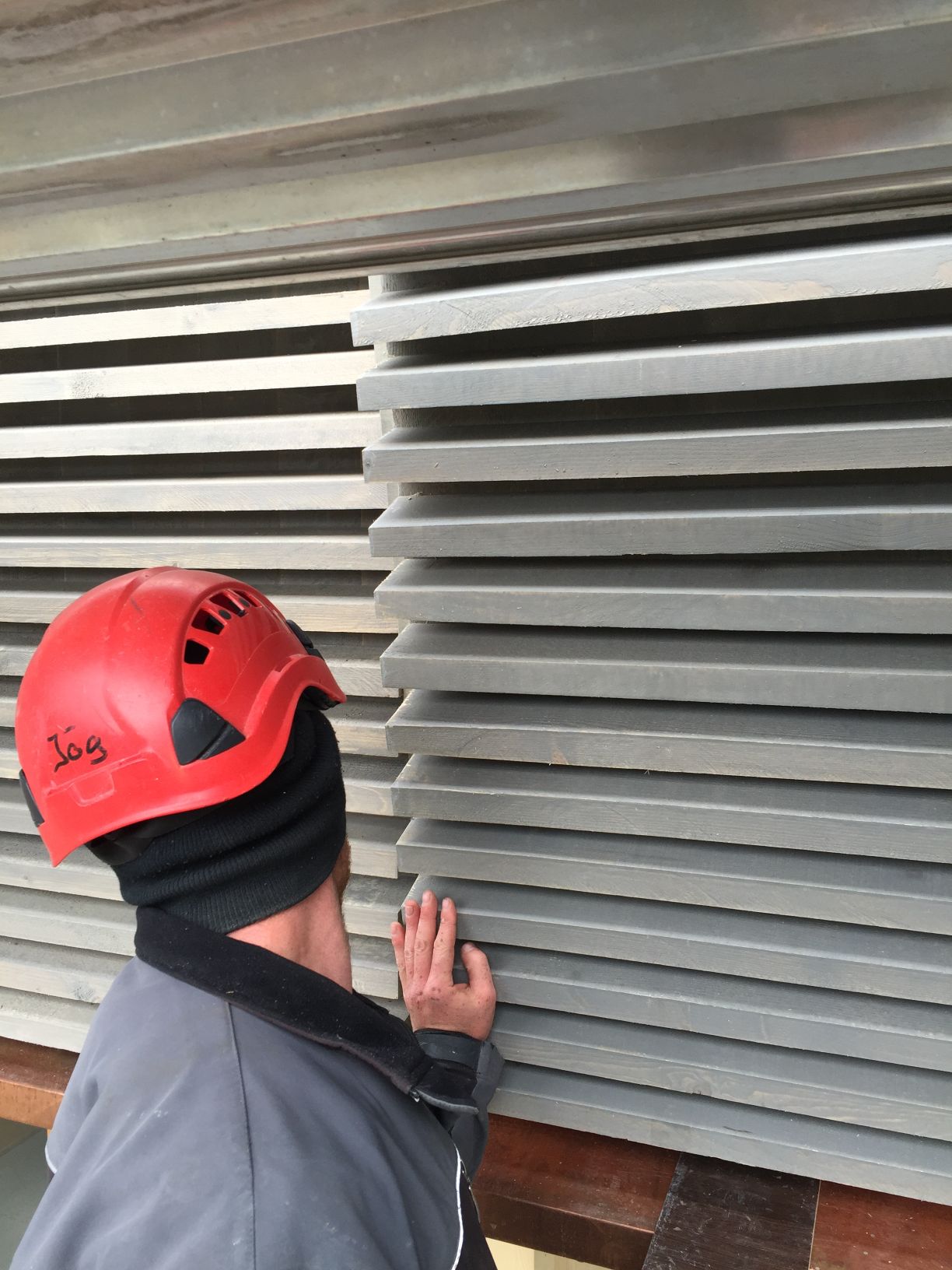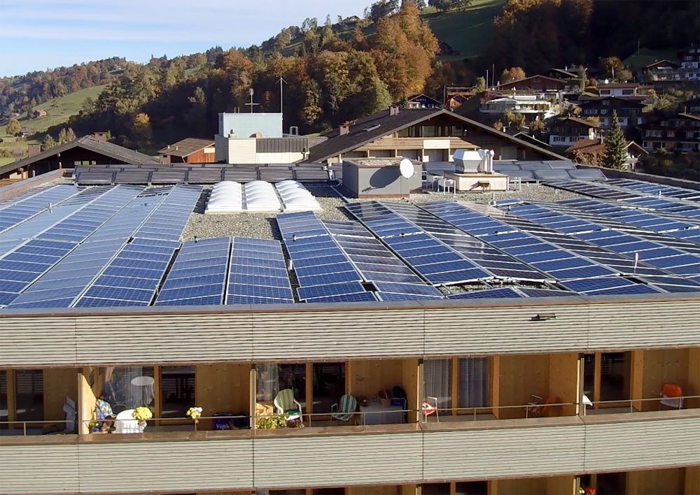 Neubau von Seniorenwohnungen in Reichenbach. Die massive Konstruktion aus Backstein und Beton wurde mit Dämmung und einer Holzverkleidung umhüllt. Die Holzverkleidung ist Lärche: ein unbehandelter und natürlicher Baustoff. Die unterschiedlichen Verwitterungs-Verfärbungen auf Nord- und Südseite wurden absichtlich in Kauf genommen, um dem Haus den unverwechselbaren Charakter zu verleihen.