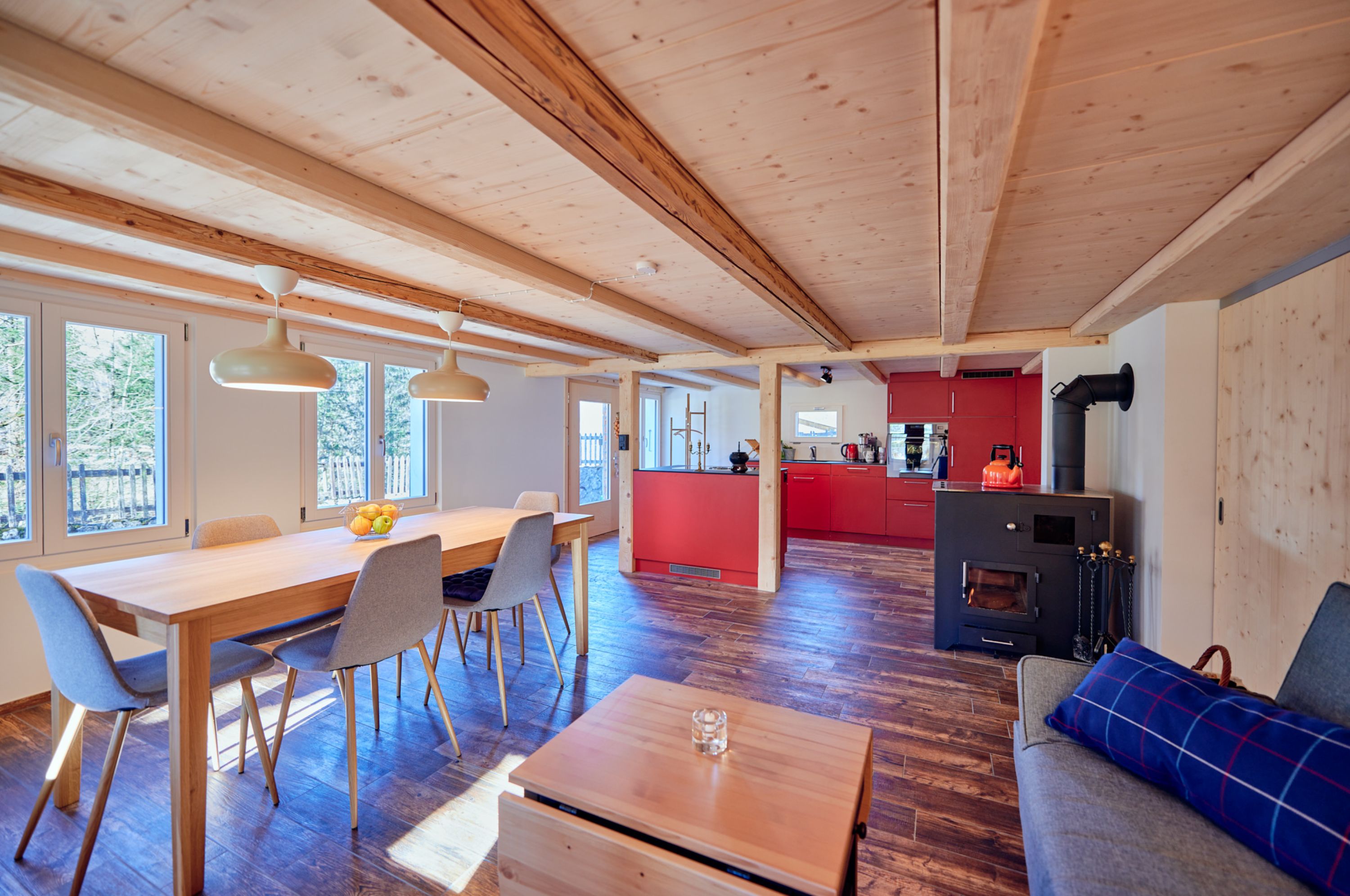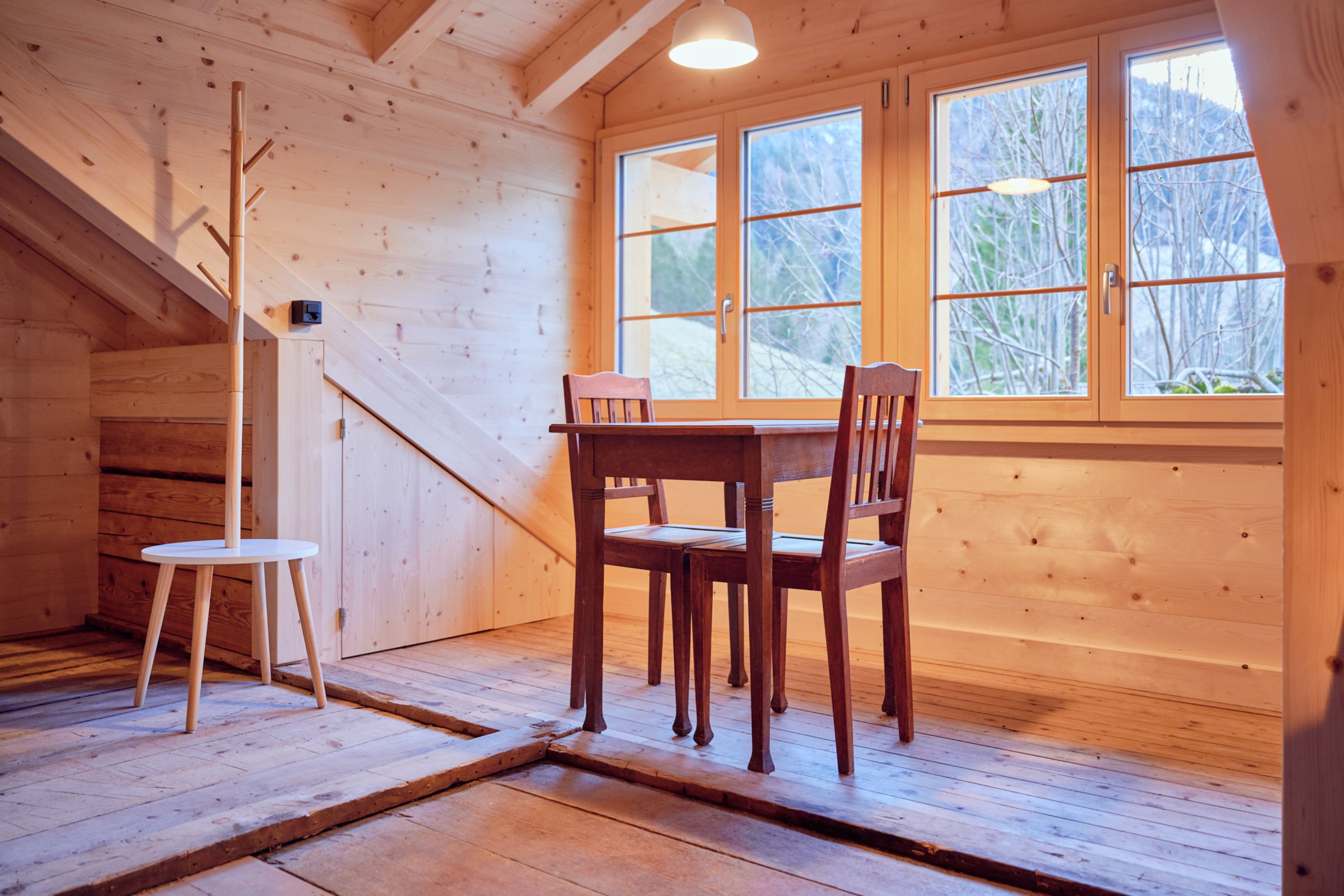 Für einige engagierte, im Alltag eingebundene Stadtmenschen, gibt es nichts Entspannenderes als sich an den freien Tagen in die heilsame Natur der Schweizer Berge zurück zu ziehen.Genau aus diesem Grund legten sich Mark Mäder und seine Frau Monika Brodmann Anfang 2018 ein charmantes, kleines Holzhaus im Kiental zu. Die grösste Herausforderung für das Paar war es, als Nicht-Einheimische vertrauensvolle Baupartner zu finden. Zum Glück machten sie im Oktober 2018 Bekanntschaft mit Marc Allenbach, der von Anfang an mit Offenheit punktete und dank seines Netzwerks nicht nur die Holzbauarbeiten übernahm, sondern – als Umbaucoach – den ganzen Umbau koordinierte. Im März 2019 startete dann der Umbau. Auf allen drei Etagen mussten marode Holzelemente ausgewechselt oder saniert werden, der Dachstock bedurfte einer Kompletterneuerung und das Erdgeschoss benötigte einen barrierefreien Eingang sowie ein rollstuhlgängiges Badezimmer. Der mangelhafte Allgemeinzustand rief eine lange Liste mit Sicherheitsbestimmungen auf den Plan.
