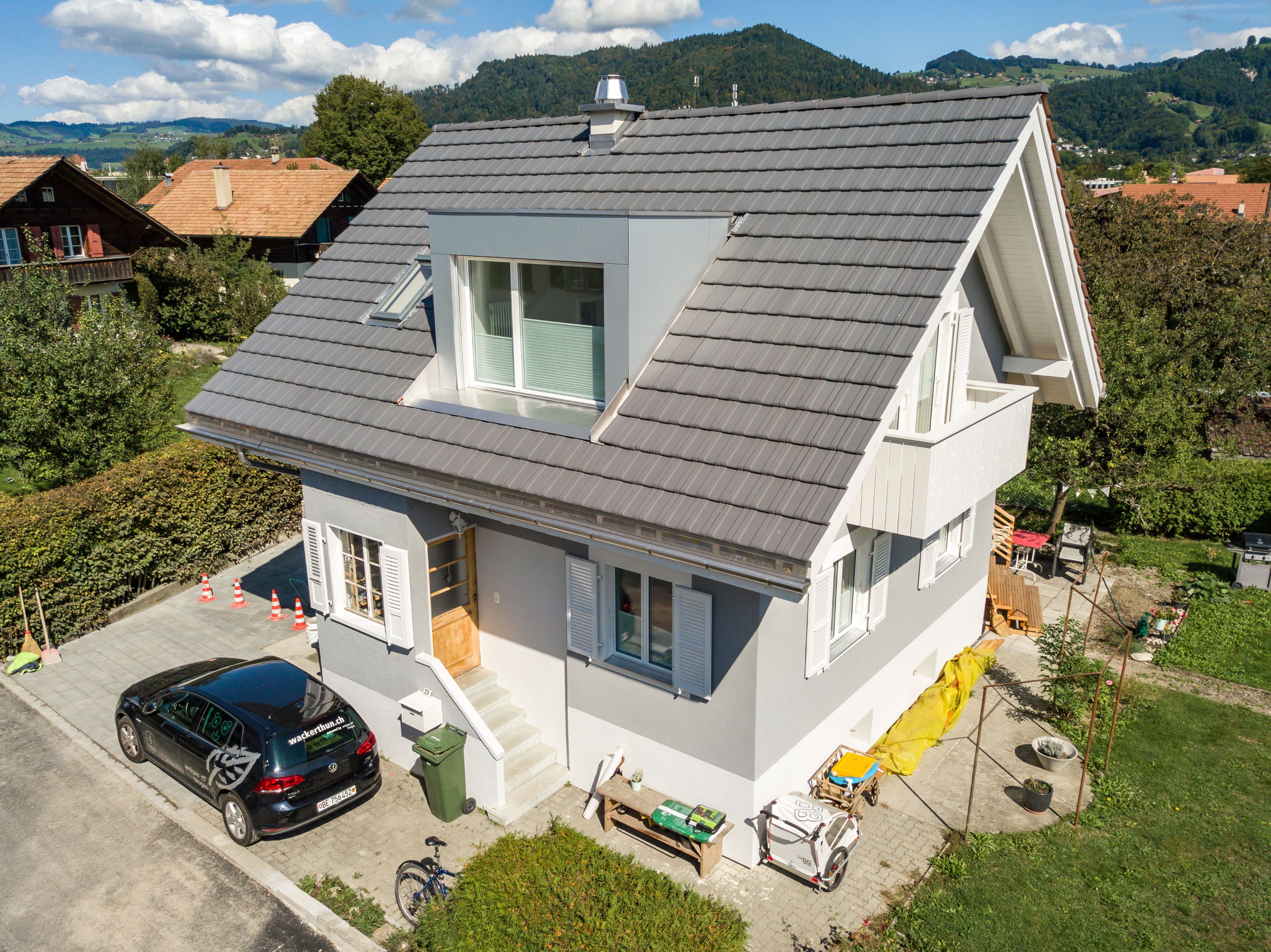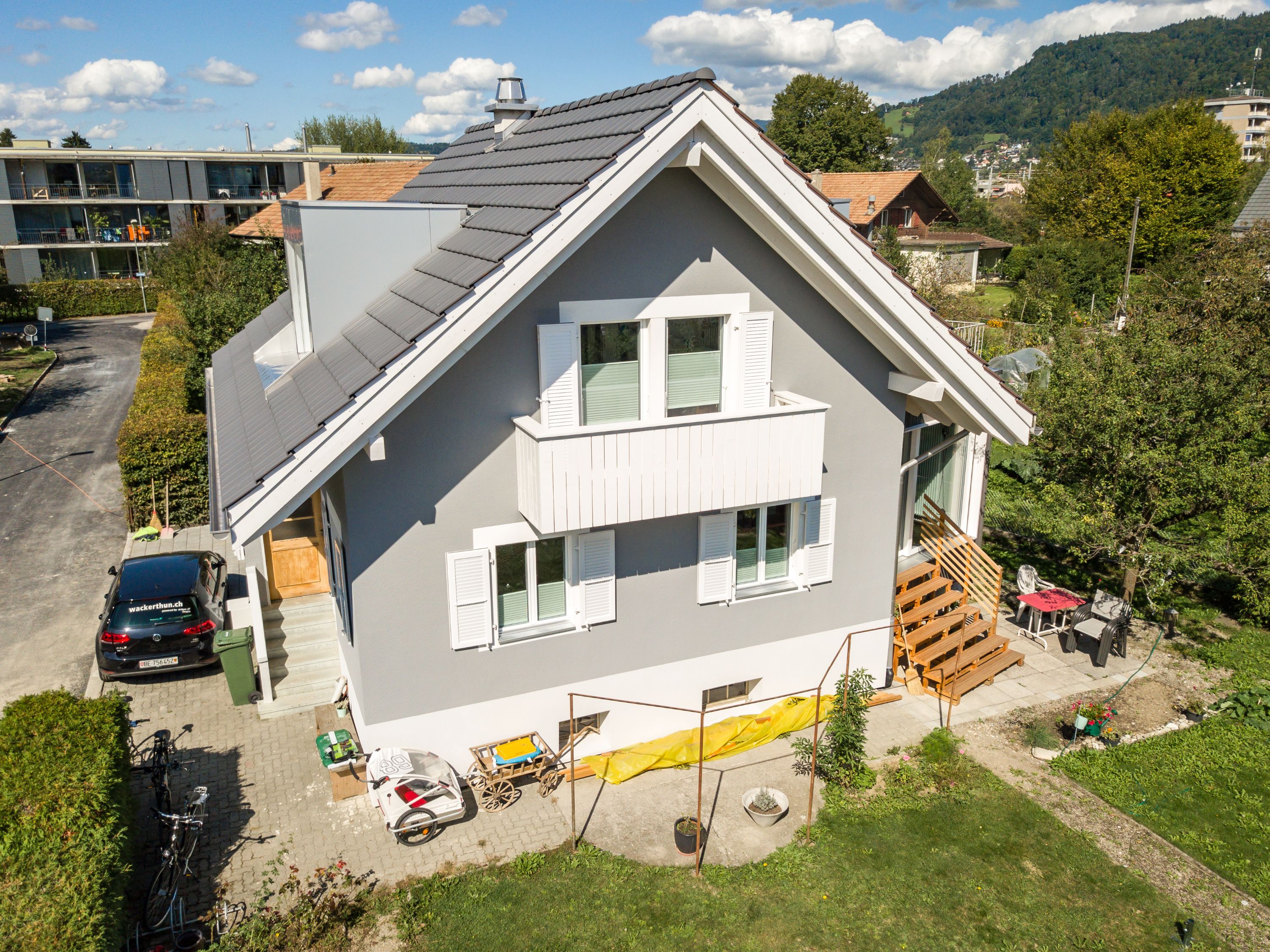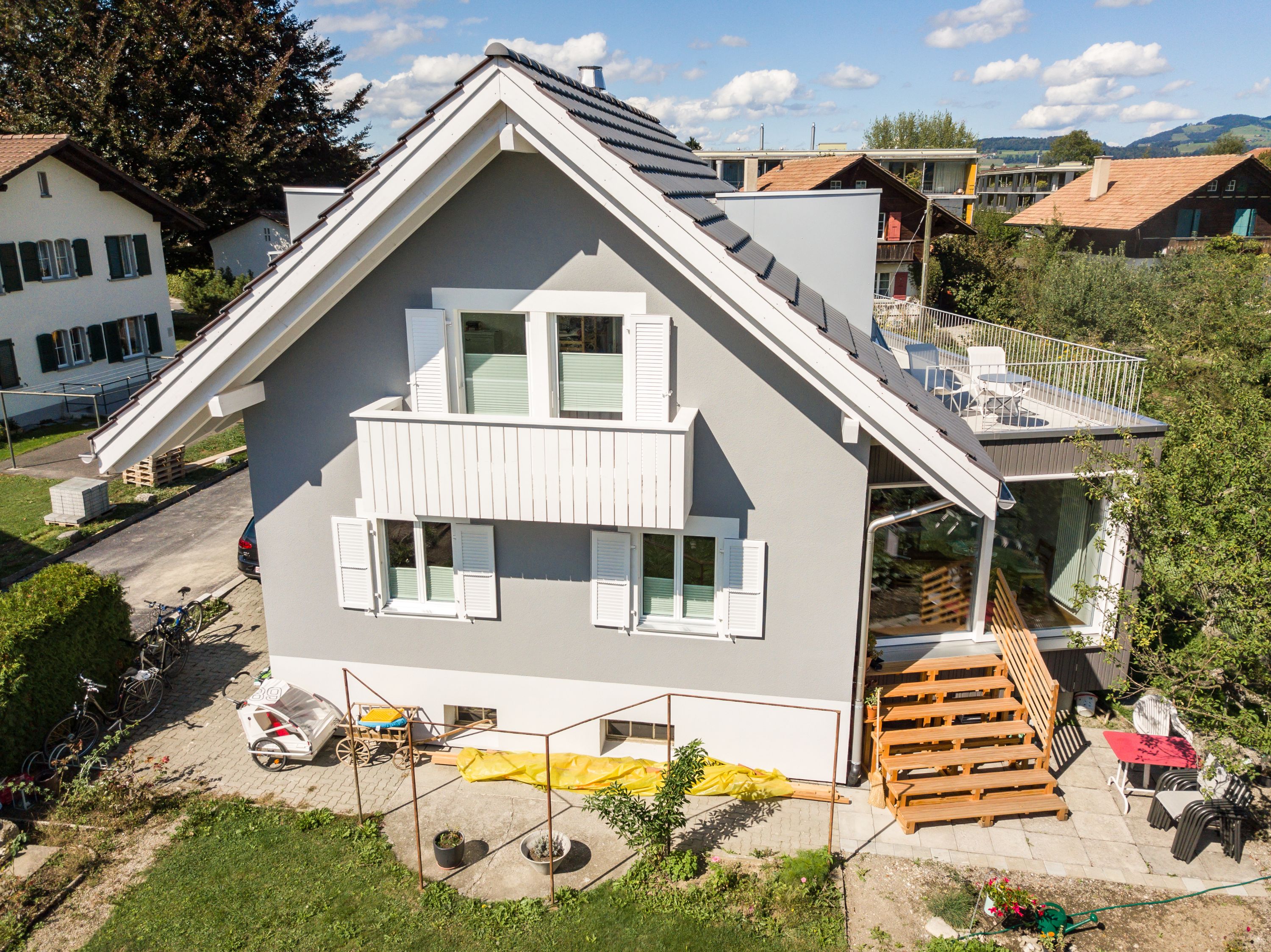 Der Umbau des bestehenden Einfamilienhaus aus der ersten Hälfte des 20. Jahrhunderts war eine Herausforderung. Der neue Anbau wurde gekonnt in die bestehende Struktur eingebaut und harmoniert sehr gut mit der alten Bausubstanz. Das Dach wurde von Grund auf erneuert und hat, trotz gleicher Abmessung und Grösse, deutlich an Wohnkomfort und Helligkeit gewonnen. Die Terrasse auf dem Anbau ist ein Bijou und für das Geniessen der Natur unabdingbar. Fazit: Rundum gelungen.