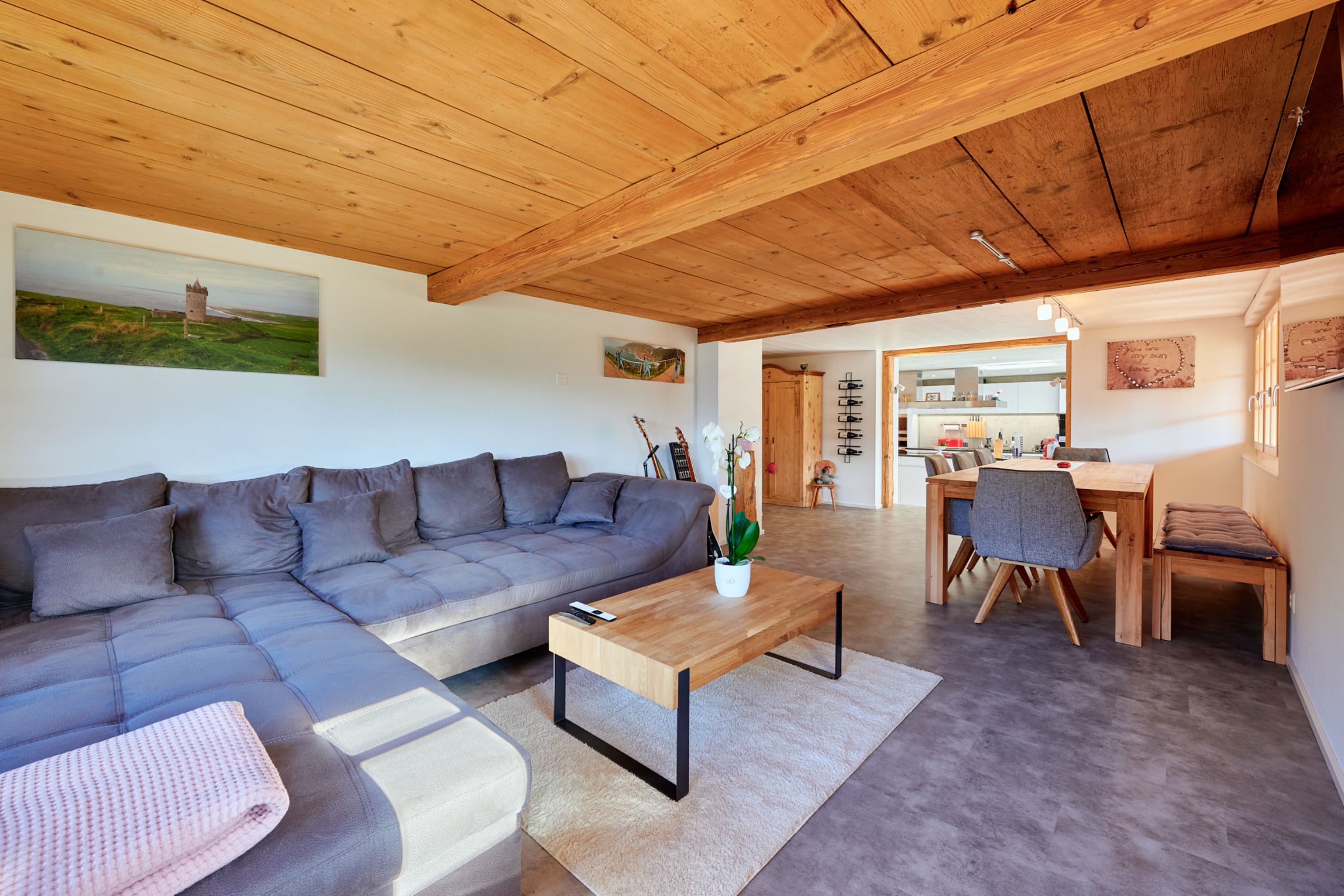 Im Februar 2019 starteten die Bauarbeiten. Im Laufe von 8 Monaten wurde ein kompletter Umbau – vom Keller bis zum Dach – durchgeführt. Im Dachgeschoss entstand eine neue Wohnung. Ebenerdig wurde die schöne neue Küche durch einen gemütlichen Wohnraum ergänzt und die kleine Einliegerwohung im Untergeschoss bietet nun der Familie sowie Gästen eine heimelige Übernachtungsmöglichkeit. Dank dem Verbau von Altholz bei der Restauration der Fassade lebt der rustikale Charakter des traditionsreichen Gebäudes weiter.