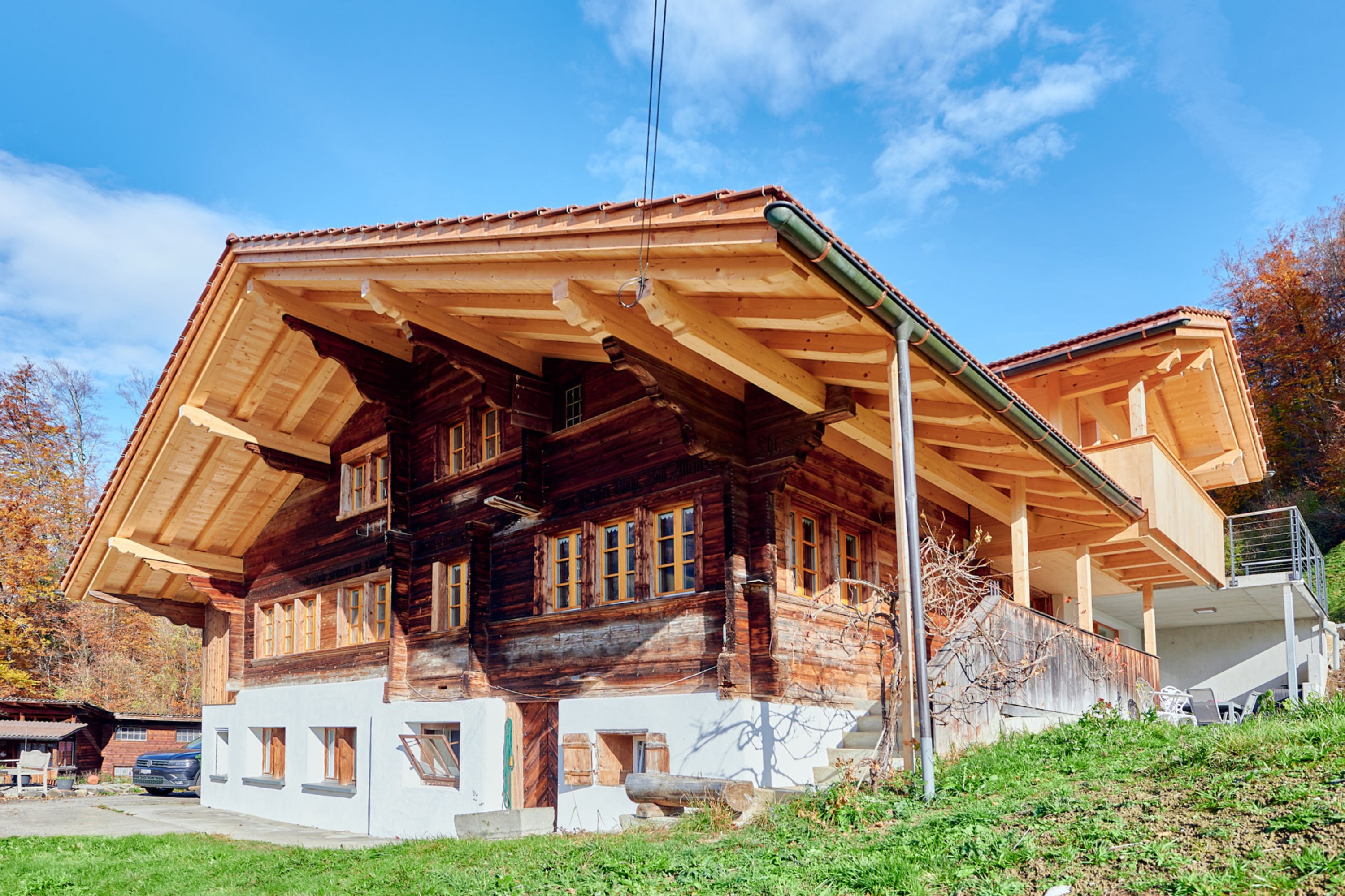 Nachbarschaft und Familie werden gross geschrieben bei Familie Isler. Als sie sich 2018 entschlossen, das um 1800 entstandene Berner Oberländer Haus zu restaurieren, stand schnell fest, wer ihnen als Baupartner zur Seite stehen würde. Doch nicht nur die direkte Nachbarschaft, sondern auch eine transparente, detaillierte Offerte und viele positive Referenzen sprachen eindeutig für die Allenbach Holzbau und Solartechnik AG.