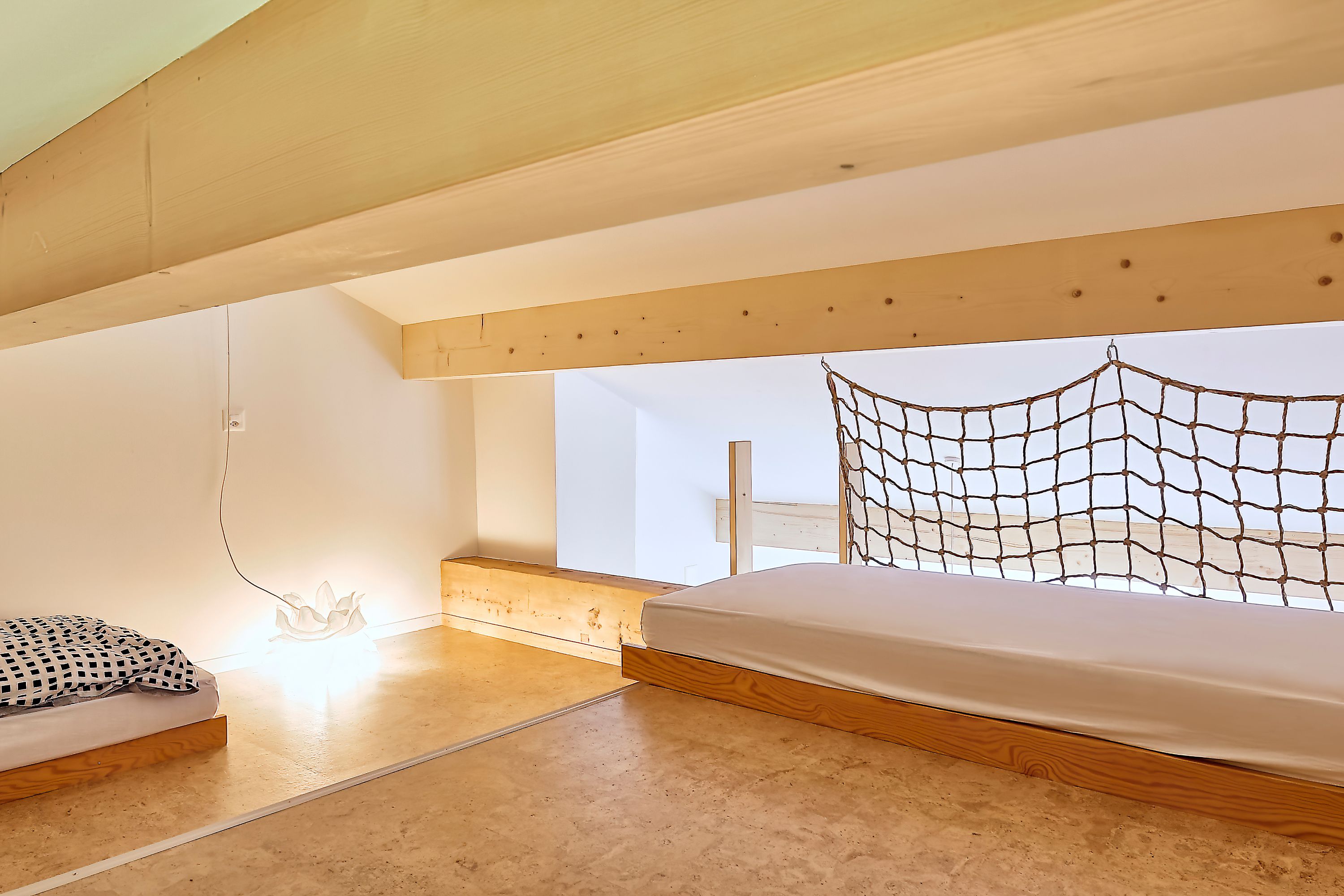 Während drei Monaten durfte die Allenbach Holzbau und Solartechnik AG ein denkmalgeschütztes Bauernhaus in Adelboden sanieren. Neben neuen Fenstern in zwei Etagen, wurden das Dach des Anfang des 17. Jahrhunderts entstandenen Gebäudes inklusive Trägerbalken und Unterzügen komplett erneuert. Zudem wurden zwei Zimmer in der oberen Etage ausgebaut. Allenbach ersetzte Türen und Böden und konstruierte in jedem Zimmer ein Heidibett abgetrennte Hochbettbereiche die über Leitern im Zimmer erreichbar sind: Ein Kletter- und Schlafparadies für jedes Grosskind.