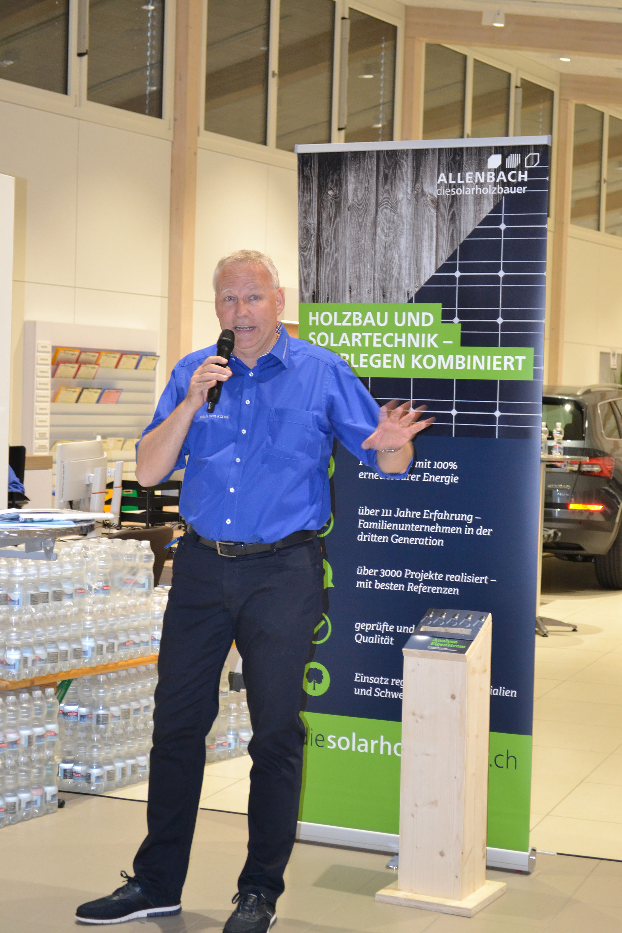 Marc Allenbach, Solarholzbauer und Inhaber mehrerer Elektroautos, ist Unternehmer, Dipl. Holzbauingenieur FH/SIU und Spezialist für die Umsetzung von Photovoltaikanlagen.